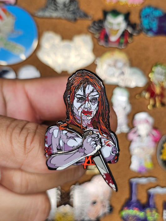 Groovy Spinning Chainsaw enamel pin/ keychain