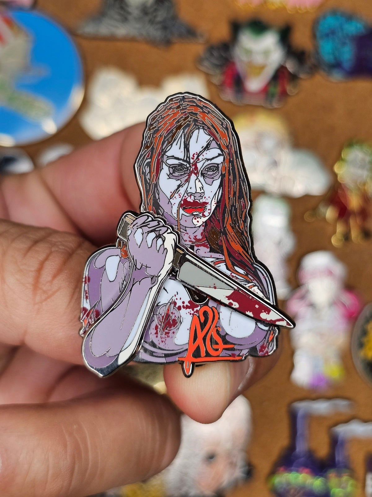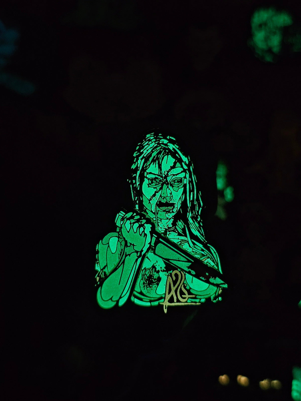 Introducing the Angry Princess enamel pin! Featuring the iconic Angry Princess from the movie 13 Ghosts, this pin has a cool moving stabbing action and an exciting 2nd variant that glows in the dark. Show your love for the movie with this eye-catching pin - perfect for any 13 Ghosts fan! 🤩