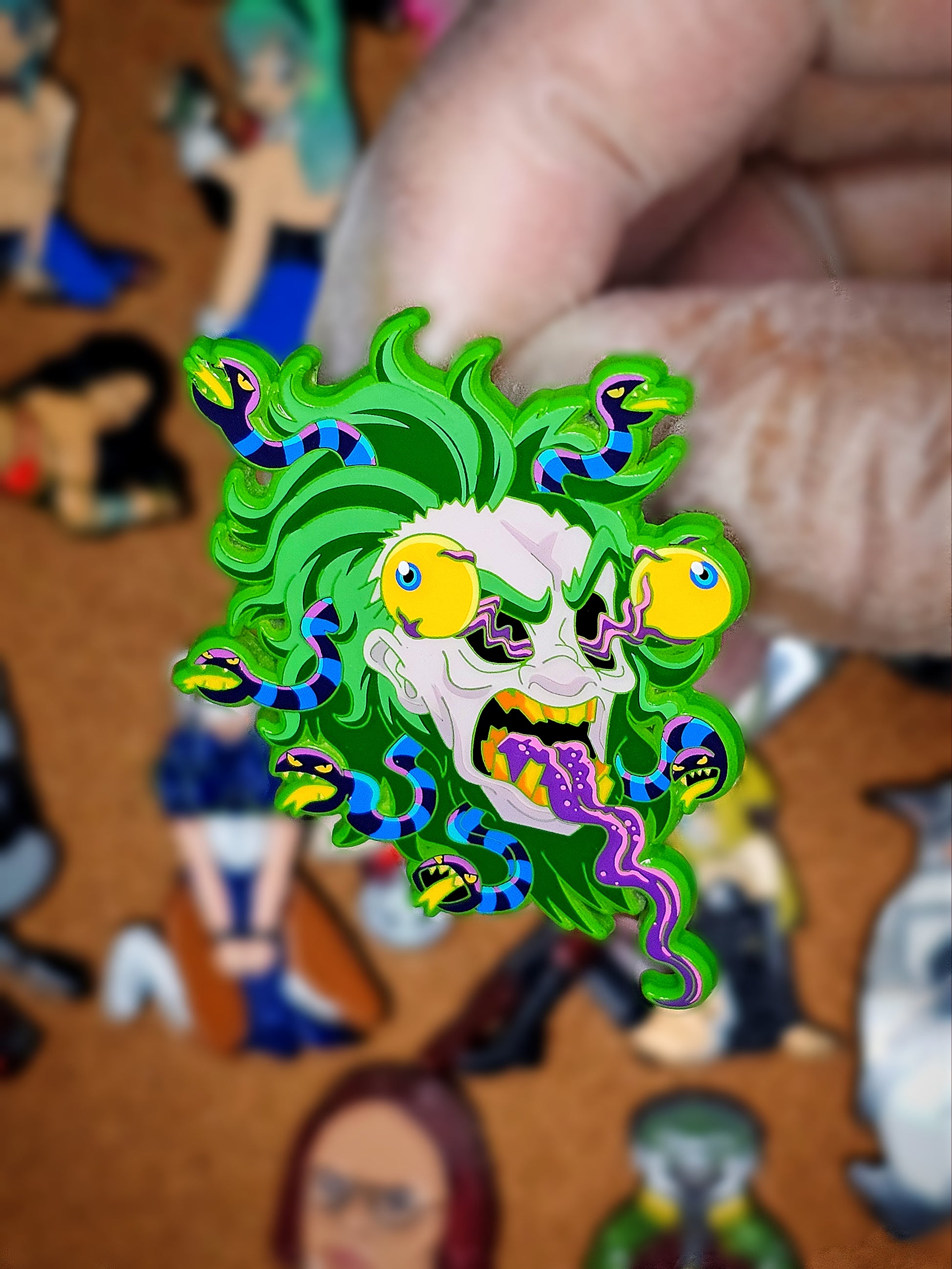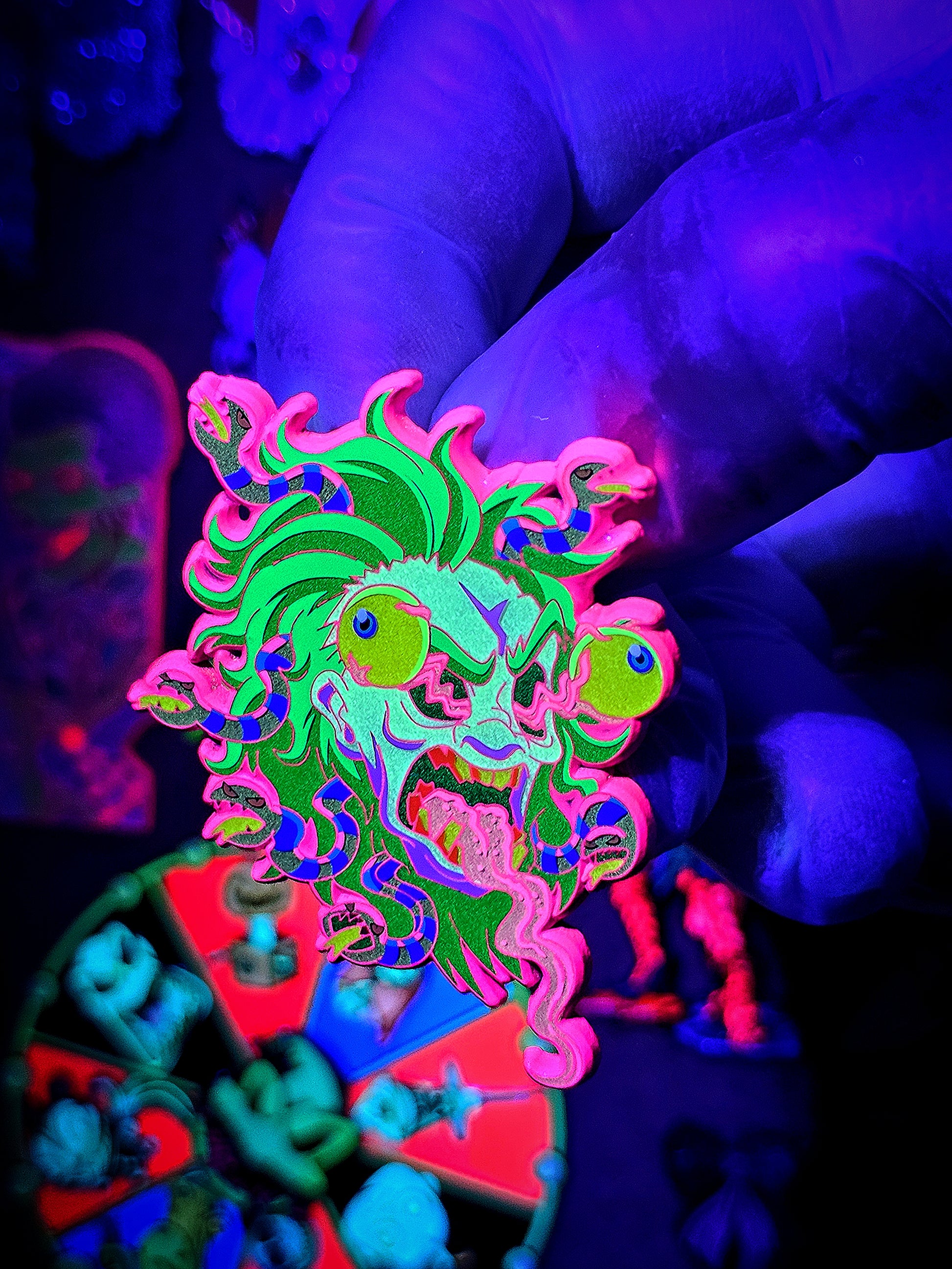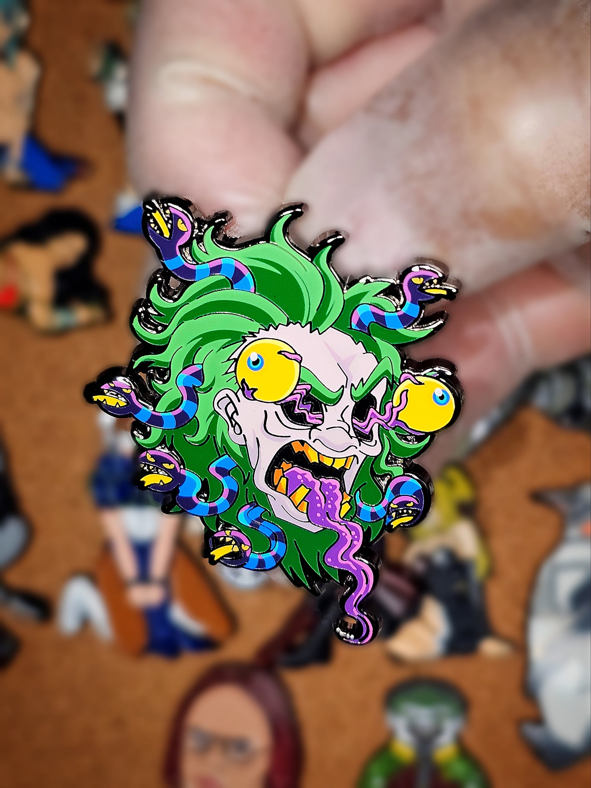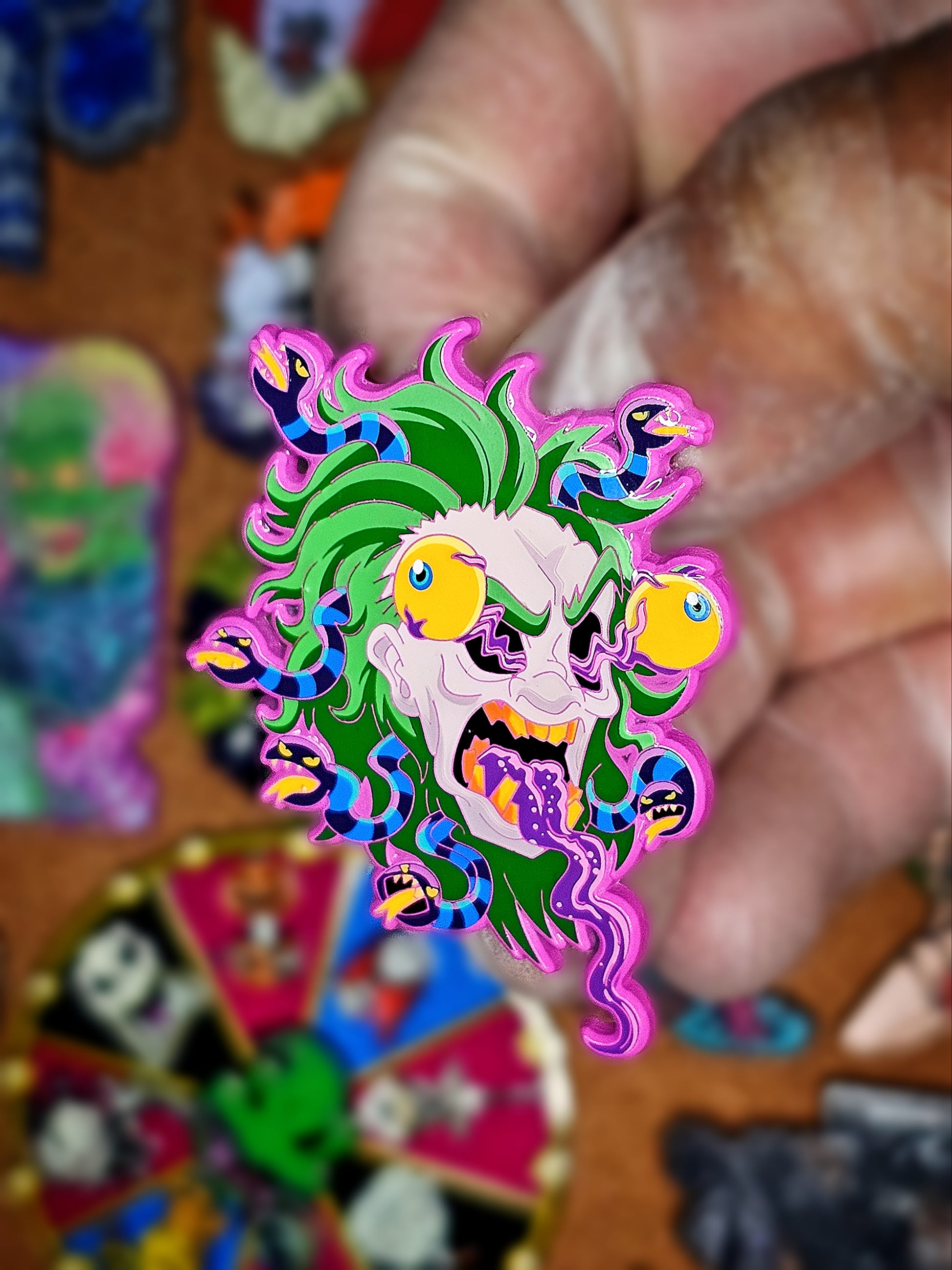 Indulge in the ultimate horror fan's must-have item - BeetleGuise Enamel pin! Featuring the iconic character with his signature buggy eyes and protruding tongue, this pin is sure to make a statement. Choose from 3 different variants to add some spooky fun to your collection.