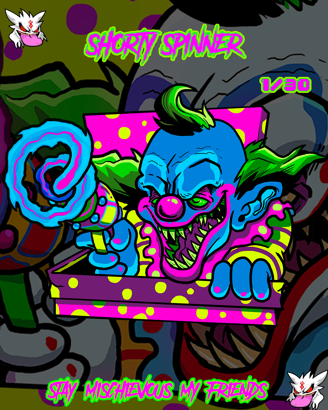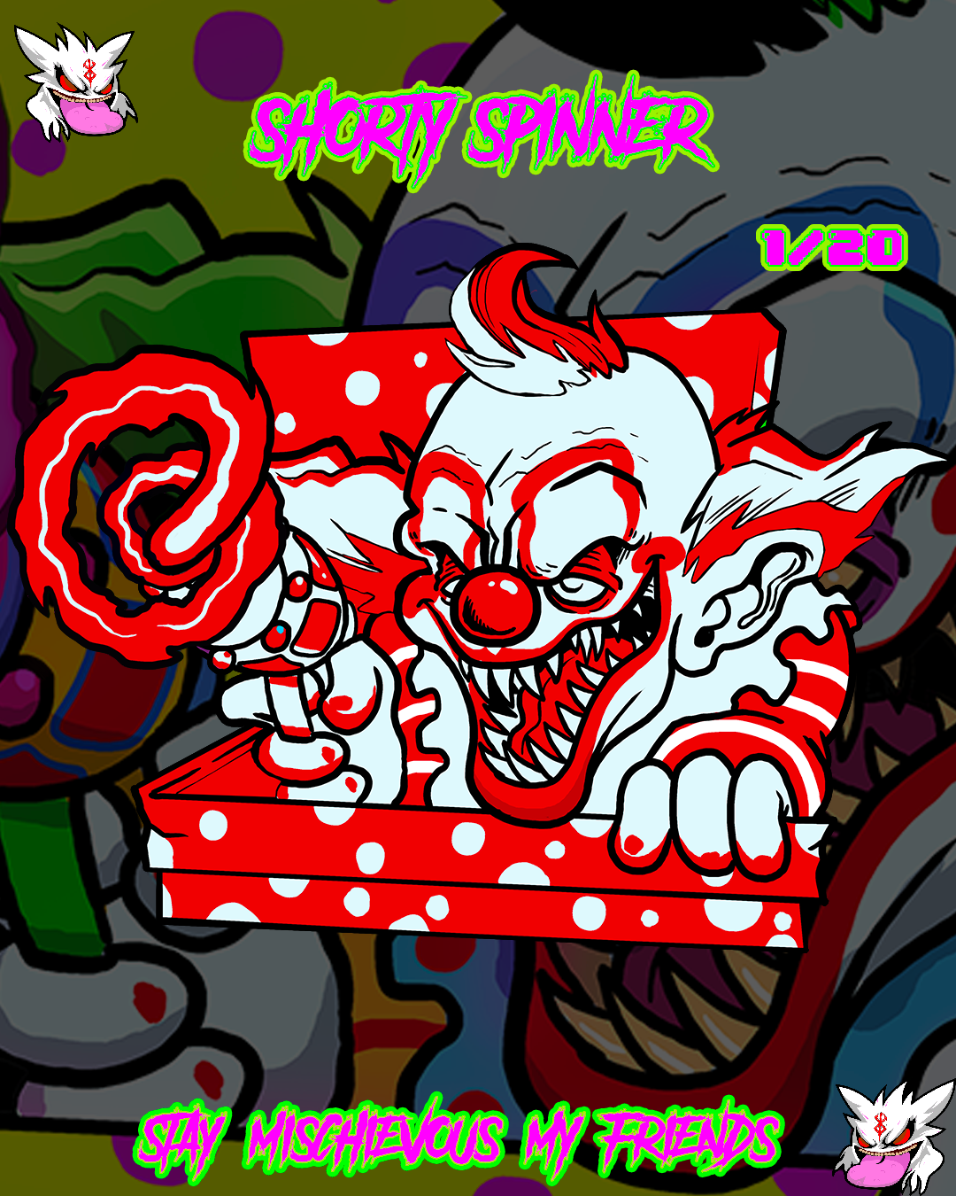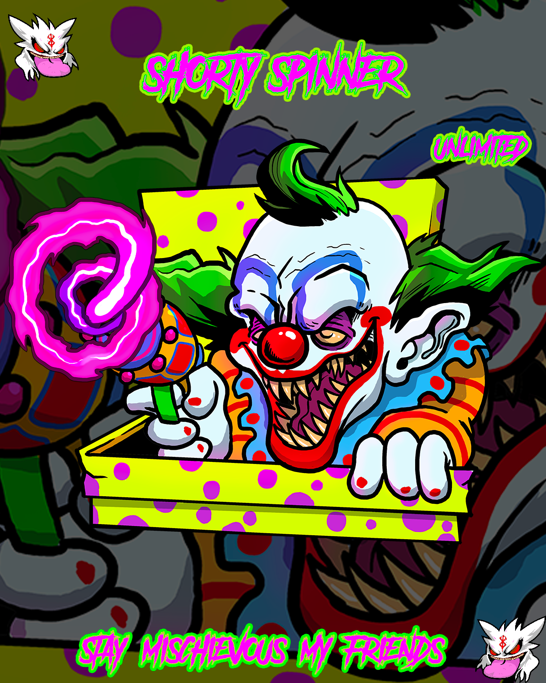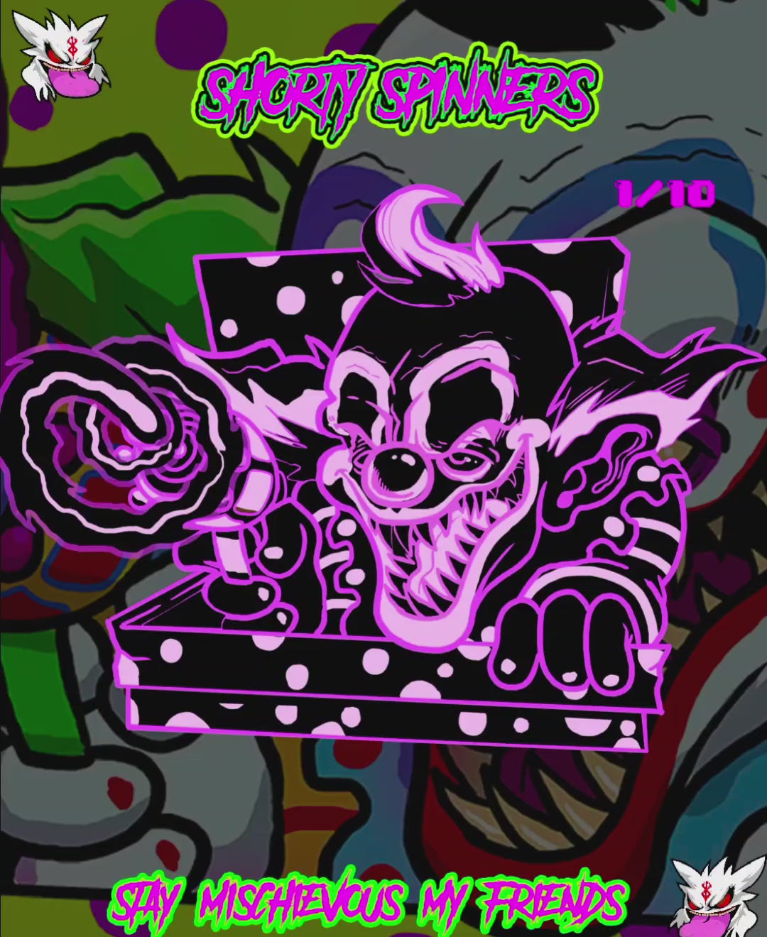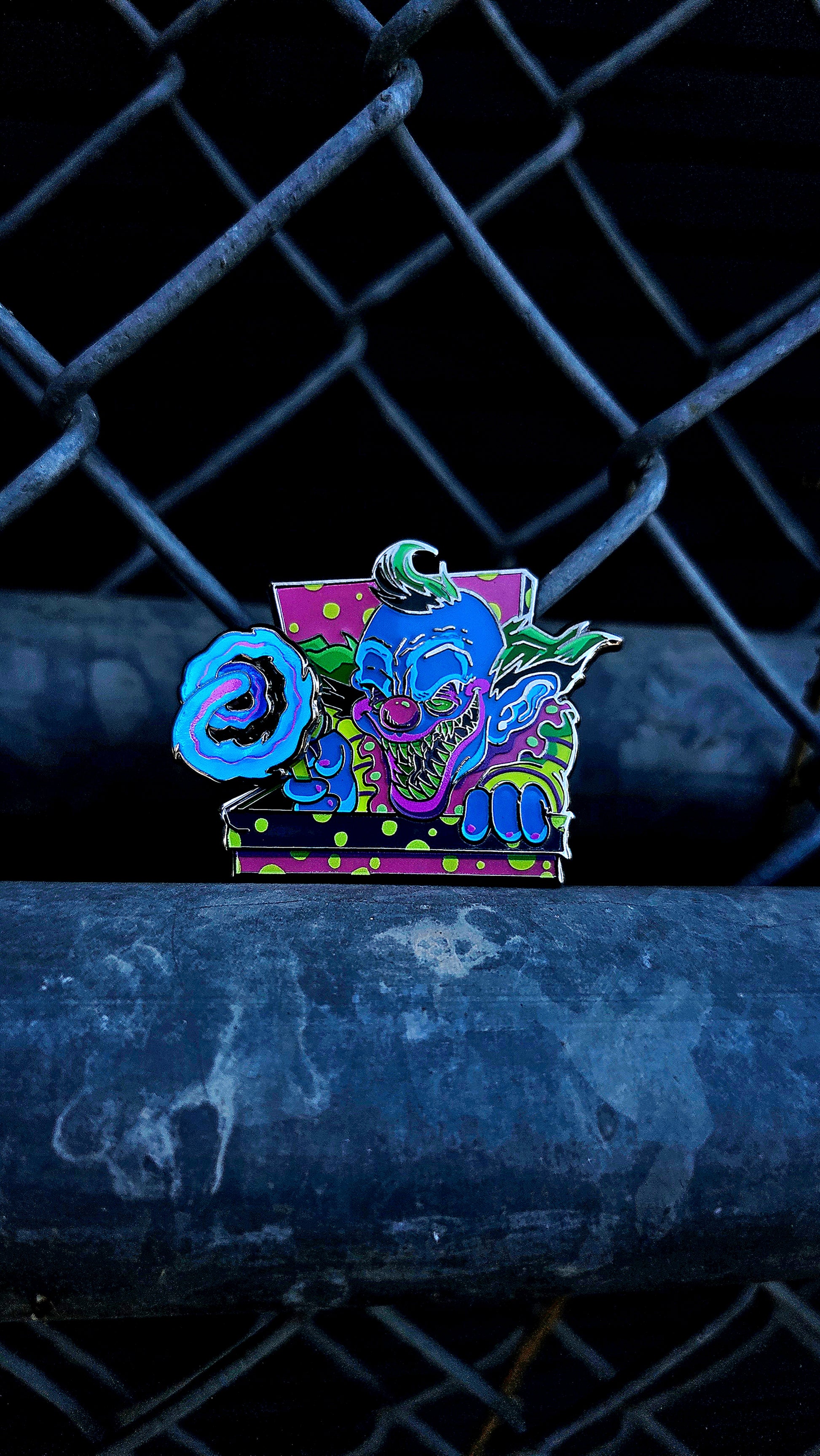 "Get ready to scream with excitement for our Cotton Candy Spinner Enamel Pin Pre Order! Inspired by the iconic Horror classic movie, this pin features SHORTY with his spinning cotton candy gun. Available in 4 variants, including a glow in the dark option. Don't miss out on these amazing and horrific pins!"