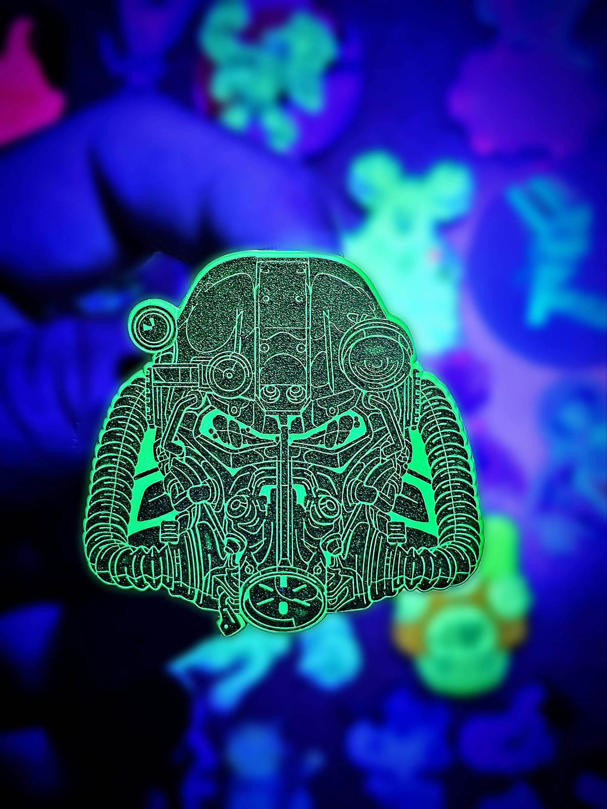 Experience the thrill of the iconic game with our F@LLOut Power Armor Enamel Pin! Featuring a T-60 mask design, this p!n is perfect for fans. Glow in the dark for an added touch and an exclusive fallout variant only available here. Show off your love for the game and add this awesome p!n to your collection today!