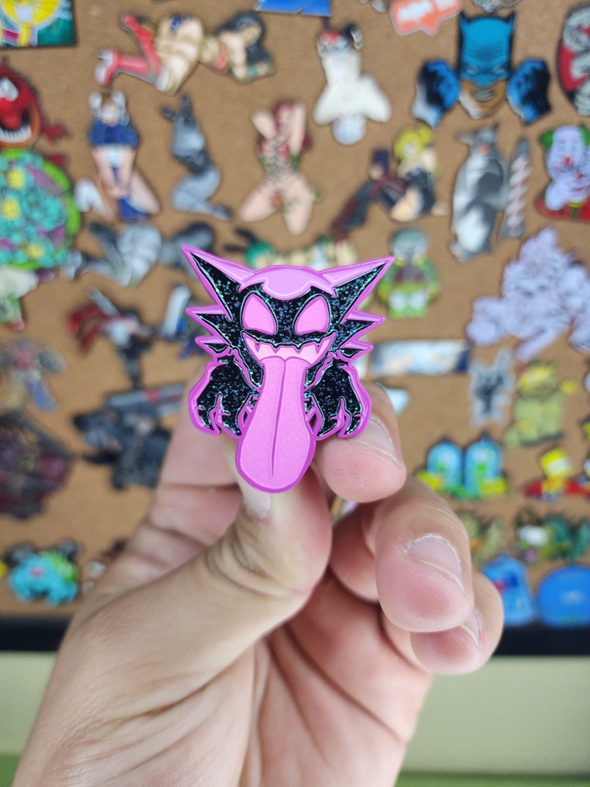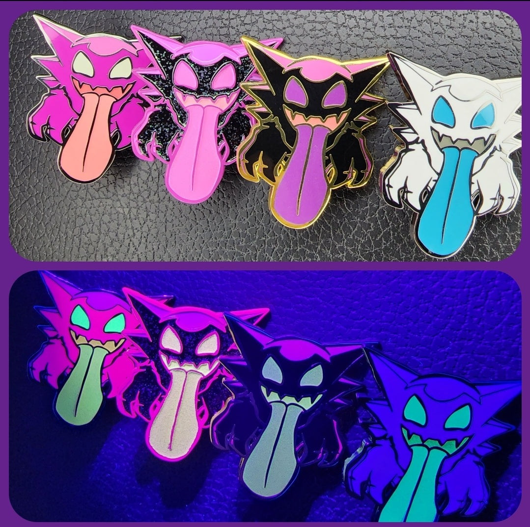 Pins come in 2 inches hard enamel and soft enamel . Glitter and glow.