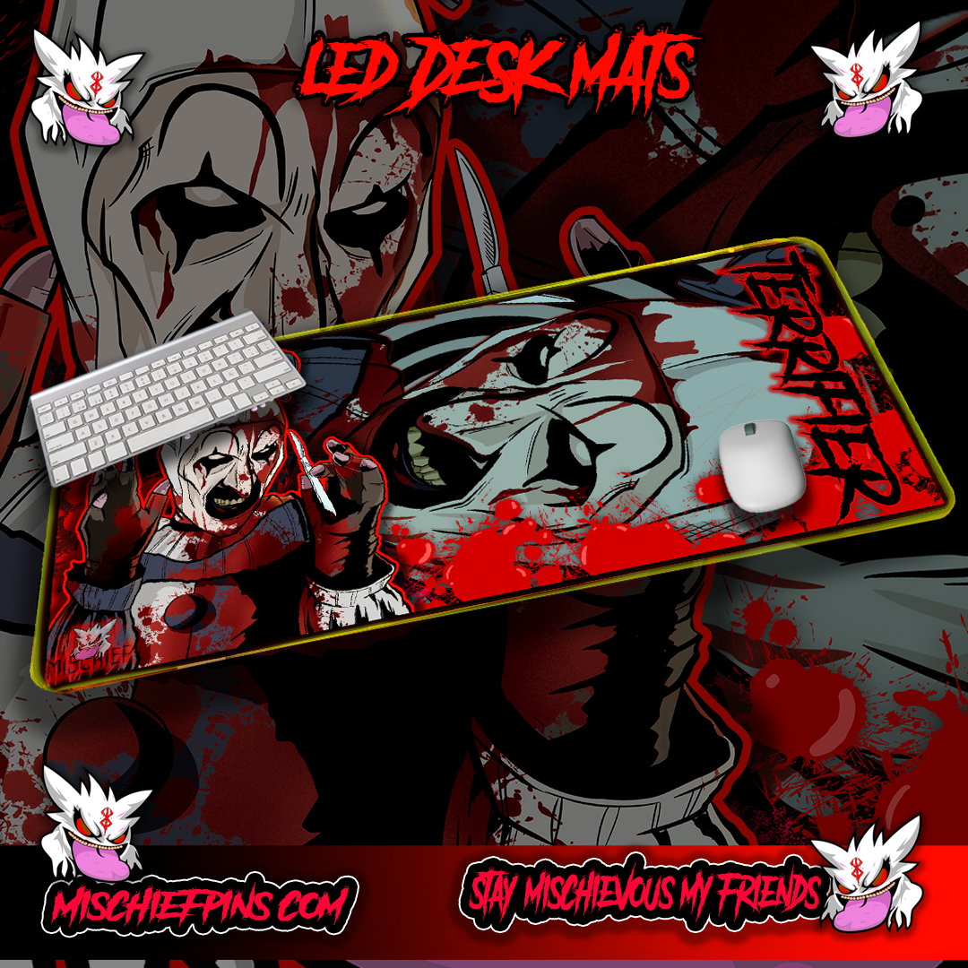 Elevate your gaming experience with Mischief LED PLAYMATS! Immerse yourself in your favorite Anime and horror characters while playing TCG Card trading or streaming your top shooters. With 8 LED modes and waterproof design, these playmats are a must-have for gamers and streamers alike! Pre-order now for endless gaming fun!